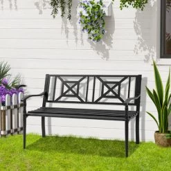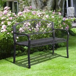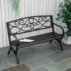 Outsunny Banc De Jardin 2 Places Style Néo-rétro Fer Forgé Lignes Fuselées Métal époxy Noir