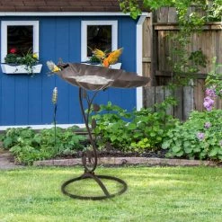 Outsunny Bain D’oiseaux Abreuvoir Pour Oiseaux Dim. 38,5L X 31l X 54H Cm Métal Bronze Antique