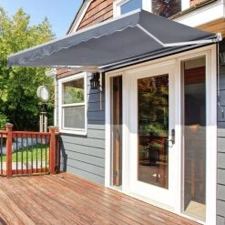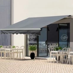 Outsunny Store Banne Manuel Rétractable Aluminium Polyester Imperméabilisé 3,5L X 2,5l M Gris – Gris
