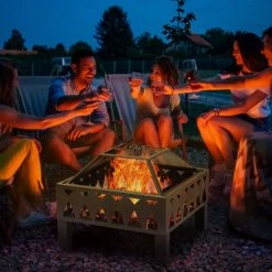 Outsunny Brasero Cheminée Foyer Extérieur Carré Avec Tisonnier Dim. 45L X 45l X 43H Cm Métal Noir