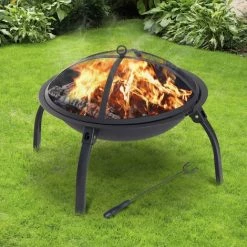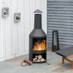 Outsunny Brasero Cheminée Foyer Extérieur Dim. 56L X 56l X 47H Cm Tisonnier Métal Noir