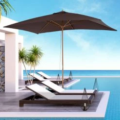 Outsunny Parasol Droit Rectangulaire Bois Polyester Haute Densité 2,95L X 2l X 2,55H M Crème