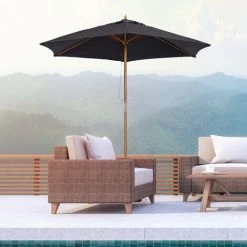 Outsunny Parasol Droit Hexagonal Grande Taille De Jardin Ø 2,5 X 2,3H M Bois De Bambou Noir – Noir