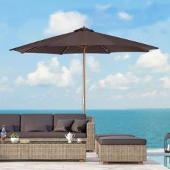 Outsunny Parasol Rond Grande Taille Diamètre 3 M Bois Polyester Haute Densité Chocolat – Marron