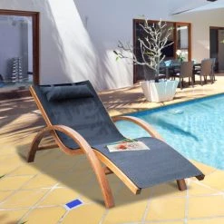 Outsunny Transat Chaise Longue Design Style Tropical Bois Massif Naturel Coloris Beige Noir
