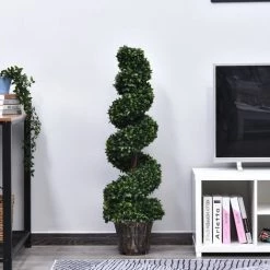 Outsunny Buis Artificiel Topiaire Artificielle En Forme De Spirale Dim. Ø 32 X 120H Cm Vert – Vert