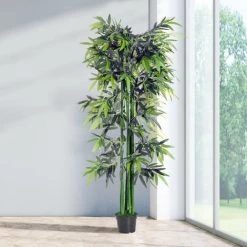 Outsunny Bambou Artificiel XXL 1,80H M 1105 Feuilles Denses Réalistes Pot Inclus Noir Vert