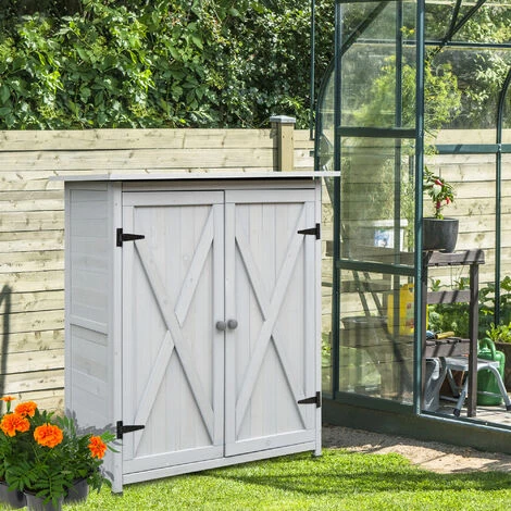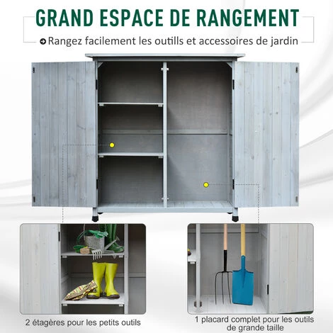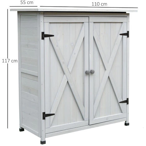 Outsunny Abri De Jardin Armoire De Jardin Remise Pour Outils Sur Pied Dim. 110L X 55l X 117H Cm 2 étagères 2 Portes Toit Bitumé étanche Bois Massif Pin Pré-huilé Gris