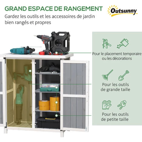 – Armoire de jardin en sapin massif robuste, idéale pour ranger et protéger vos outils et accessoires de jardin. Conçue aussi bien pour l’extérieur que l’intérieur