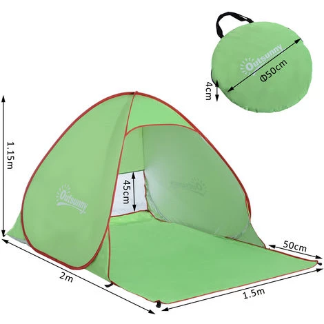 Ce joli petit abri tente de plage Pop-up à ouverture / fermeture rapide sera idéal pour passer de longues et agréables journées en bord de mer. Equipé d’une petite fenêtre arrière ainsi que d’un grand tapis de sol, vous serez confortablement installé à l’abri du soleil et du sable !