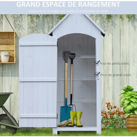 Cette splendide armoire de jardin en bois de sapin prĂ©-huilĂ© avec toit bitumĂ© vous sera grandement utile ! DotĂ©e de plusieurs espaces de rangement grâce Ă ses 3 Ă©tagères, très pratique d’utilisation avec sa porte verrouillable par loquet, vous pourrez organiser et protĂ©ger vos outils et accessoires de jardin. CaractĂ©ristiques : – Armoire abri de jardin compact en forme de petit chalet avec toit double pente bitumĂ© : pratique et Ă©lĂ©gant – Armoire multi-rangement : 3 Ă©tagères latĂ©rales gauche + grand espace de rangement Ă droite – Espace intĂ©rieur droit pour ranger vos outils avec manche type pelle, râteau, pioche, balai, etc. – Espace intĂ©rieur gauche Ă©quipĂ© de 3 Ă©tagères latĂ©rales sur lesquelles vous pourrez ranger vos petits outils : sĂ©cateur, clĂ©s, pinces, etc. – Grande porte principale avec loquet de sĂ©curitĂ© – Conception, fabrication en bois de sapin prĂ©-huilĂ© anti-UV, humiditĂ© : usage pĂ©renne – Armoire montĂ©e sur 4 pieds robustes : gage supplĂ©mentaire de protection contre l’humiditĂ© du sol – Montage facile, rapide (manuel d’assemblage illustrĂ© fourni) SpĂ©cifications : – 2 coloris au choix : blanc ou sapin prĂ©-huilĂ© – MatĂ©riaux principaux : bois de sapin, bitume – Dim. totales : 77,5L x 54,2l x 179,5H cm – Surface au sol : environ 0,31 m² – Dim. porte : 126L x 52l cm – Dim. Ă©tagères : 35L x 25,5l cm – Livraison effectuĂ©e en un colis – Charge max. reco. par Ă©tagère : 10 Kg – Charge max. reco. plancher : 25 Kg – RĂ©f. : 845-246WT/ND