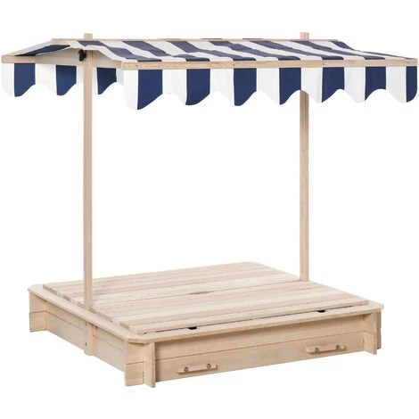 Ce magnifique bac à sable carré en bois permettra à votre enfant de façonner tous les châteaux de ses rêves. Equipé d’un toit en polyester haute densité de hauteur et inclinaison réglables, vous pourrez à la fois protéger vos enfants des rayons du soleil mais également refermer votre bac une fois les châteaux de sable terminés ! Caractéristiques : – Bac à sable en bois de forme carrée dim. 106L x 106l cm permettant à plusieurs enfants de jouer en même temps (4 max.) – Convient aux enfants de 3 à 7 ans – Les bancs du bac à sable se transforment en couvercle, ce qui permet de garder une qualité de sable optimale – Banc avec dossier : idéal pour s’asseoir hors du sable et façonner des châteaux sans se faire mal au dos – Un tissu non tissé noir est également inclus dans la livraison pour protéger le bac à sable de vos enfants contre les mauvaises herbes ou les insectes rampants – Sécurité optimale d’utilisation : certifié normes CE EN 71-1-2-3, absence totale d’angles coupants ou pointus – À utiliser uniquement sous la surveillance d’un adulte – Montage facile, rapide à l’aide du manuel d’assemblage illustré fourni Spécifications : – Couleurs principales : bois naturel, auvent bleu et blanc – Matériaux principaux : bois de sapin, tissu polyester – Dim. totales : 106L x 106l x 121H cm – Dim. interne : 90L x 90l x 15,5H cm – Dim. banc : 96L x 22l x 18H cm – Charge maximale (par banc) : 50 Kg – Convient aux enfants de 3 à 7 ans – Certifications normes EN71-1-2-3 – Livraison effectuée en un colis – Réf. : 343-029