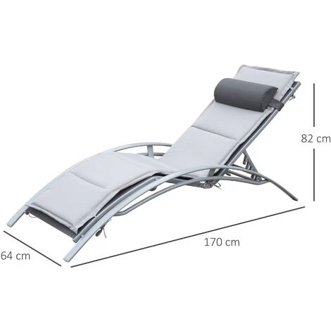 Ce bain de soleil est idéale pour profiter au mieux des beaux-jours ! Equipé d’un matelas imperméable et d’une tétière, doté d’une robuste structure en aluminium, inclinable multi-positions, il vous donnera entière satisfaction pendant votre farniente au soleil ! Caractéristiques : – Bain de soleil transat design contemporain avec sublimes lignes arquées – Structure en aluminium, poids faible mais très robuste – Dossier inclinable multi-positions (5) : idéal pour trouver la position la plus adaptée à la situation – Tissu textilène imperméable et plus perméable à l’air pour votre confort optimal – Equipe d’un matelas et d’une tétière amovible – Montage facile à l’aide du manuel d’assemblage illustré fourni Spécifications : – 2 coloris au choix : beige ou gris – Dim. : 170L x 64l x 82H cm – Matériaux principaux : aluminium, textilène – Charge max. recommandée : 120 Kg – Livraison effectuée en un colis – Réf. : 01-0705/704