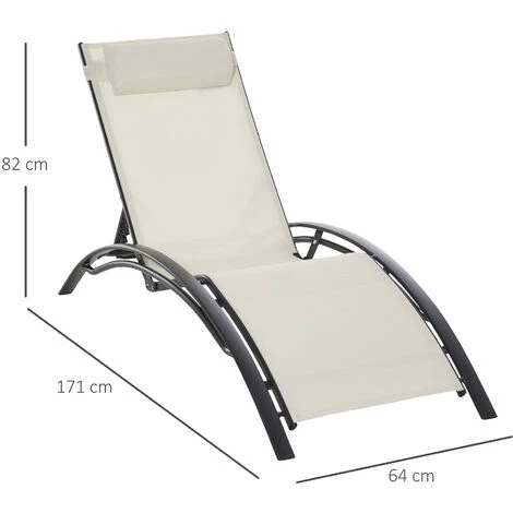 Ce bain de soleil design contemporain sera idéale pour profiter au mieux des beaux-jours ! Doté d’une robuste structure en aluminium, inclinable multi-positions au niveau du dossier, il vous donnera entière satisfaction pendant votre farniente au soleil ! Caractéristiques : – Bain de soleil transat design contemporain avec sublimes lignes arquées, idéal pour sublimer votre extérieur – Structure robuste en aluminium : poids faible total de 5 Kg – Dossier inclinable multi-positions (5) : parfait pour trouver la position la plus adaptée à la situation (sieste, bronzage, lecture, etc…) – Revêtement textilène imperméable et plus perméable à l’air pour votre confort optimal (aucune détérioration causée par les UV, l’huile, l’eau, etc…) – Équipé d’une tétière amovible – Conception ergonomique : assise et dossier se moulant à la forme de votre corps – Montage facile, rapide à l’aide du manuel d’assemblage illustré fourni Spécifications : – 2 coloris au choix : beige ou gris – Matériaux principaux : cadre en aluminium, textilène – Dim. totales : 171L x 64l x 82H cm – Dim. position dossier 1e niveaux : 153L x 64l x 89,5H cm – Dim. position dossier 5e niveaux : 167L x 64l x 55H cm – Dim. textilène : 175L x 49,5H cm – Dim. têtière : 39L x 16l cm (épaisseur : 7 cm) – Largeur assise : 50 cm – Charge max. recommandée : 100 Kg – Livraison effectuée en un colis – Réf. : 84B-179V01BG/CG