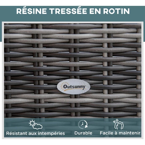 – Structure robuste en métal époxy anticorrosion et revêtement en résine tressée imitation rotin : matériaux de qualité résistant aux rayons UV, à l’humidité et ne nécessitant pas d’entretien particulier