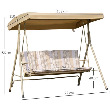 Cette jolie balancelle de jardin 3 places grand confort sera parfaite pour vous détendre et faire un break au soleil ou à l’ombre. Disposant d’une banquette ergonomique avec coussins d’assise/dossier amovibles, accoudoirs et équipé d’un toit à inclinaison réglable, vous pourrez tranquillement et confortablement lire un livre, boire un verre et discuter en famille ou entre amis. Le meilleur atout repos et détente pour votre jardin, terrasse ou balcon ! Caractéristiques : – Balancelle style contemporain coloris beige mêlant simplicité et élégance pour une parfaite intégration dans votre jardin ou sur votre terrasse – Capacité d’assise de 3 personnes – Finition de qualité : piètement antidérapant (stabilité optimale même en mouvement), toile de toit avec lambrequin droit – Dossier ergonomique légèrement incliné, épais coussins d’assise et de dossier amovibles avec cordons d’attache à l’armature : confort d’utilisation optimal – Coussins avec revêtement polyester haute densité 160 g/m² et déperlant – Toit avec inclinaison réglable afin de vous adapter aux différentes hauteurs du soleil suivant l’heure de la journée – Châssis robuste en acier époxy anticorrosion : sécurité optimale, usage pérenne – Montage et entretien facile (manuel d’utilisation fourni) Spécifications : – Couleur principale : beige – Matériaux principaux : acier, polyester, oxford – Dim. totales : 172L x 110l x 156H cm – Dim. assise : 130L x 47l cm – Dim. pare-soleil : 168L x 110l x 13,5H cm – Hauteur d’assise : 40 cm – Charge max. recommandée : 210 Kg – Livraison effectuée en un colis – Réf. : 84A-101