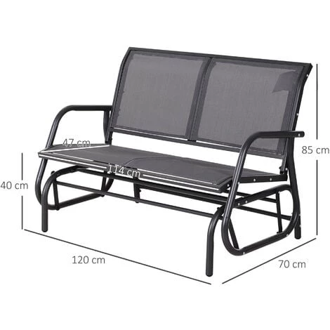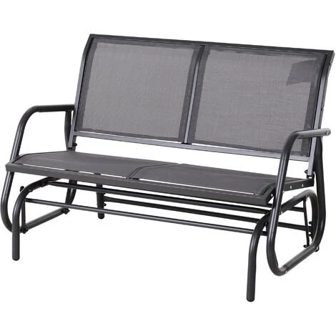 Outsunny Banc à Bascule De Jardin 2 Places Design Contemporain Grand Confort Accoudoirs Assise, Dossier Ergonomique Acier Textilène Gris