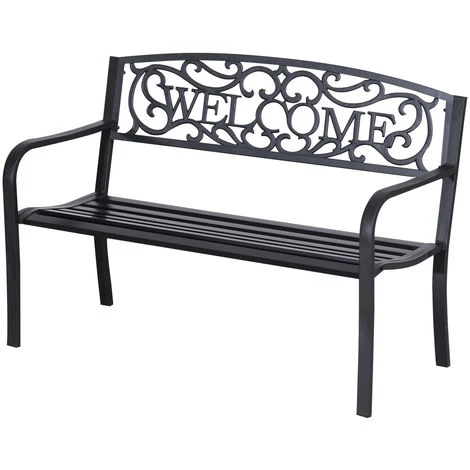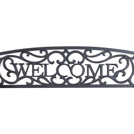 – Dossier haut avec motifs en forme de treillage et inscription welcome