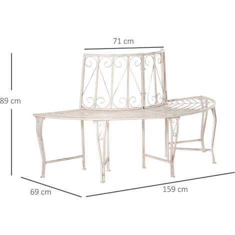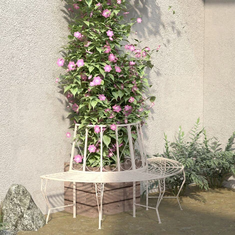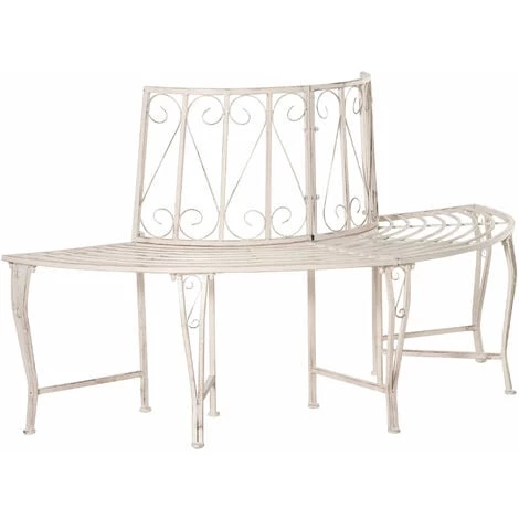 – Banc de jardin 4 places pour arbre style fer forgé en métal blanc effet vieilli