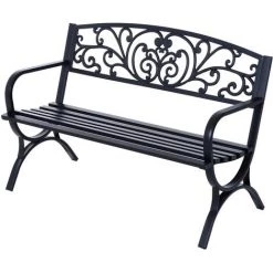 Outsunny Banc De Jardin Terrasse En Acier Fonte Noir 3 Places 127 X 60 X 85 Cm Charge Max 250 Kg