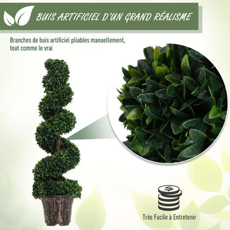 Apportez une touche artistique topiaire à votre intérieur ou extérieur avec ce magnifique buis artificiel en spirale. Cette plante sublimera l’espace de votre choix en ajoutant originalité et élégance.