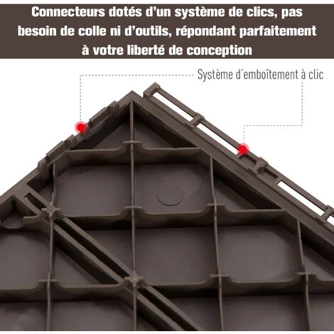 – Lot de 9 pièces à installer sur votre terrasse, balcon, patio, ou dans votre jardin (un lot vous permet de couvrir une surface de 0,81 m² max.)