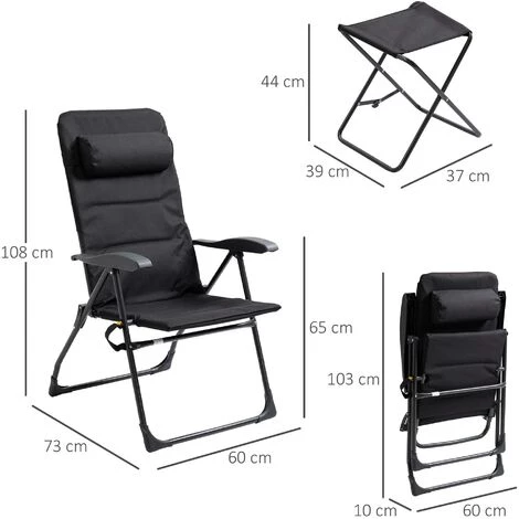 Laissez le stress de la journée s’évacuer avec ce bel ensemble chaise longue et repose-pied ! Vous pourrez régler son dossier dans n’importe quelle position (7 au choix) pour un confort et détente inégalable. La conception pliable assure un rangement et déplacement facile (chaise longue dotée d’une poignée). Caractéristiques : – Bel ensemble chaise longue et repose-pied idéal pour ajouter une touche supplémentaire de modernité à votre intérieur (véranda) ou extérieur (jardin, terrasse, balcon) – Chaise longue avec accoudoirs vous permettant de prendre une position extrêmement relaxante – Dossier inclinable multi-positions (7 au choix !) suivant votre besoin : lecture, sieste, bain de soleil, etc. – Tétière amovible incluse – Ensemble pliable et compact, facile à porter et à ranger (chaise longue dotée d’une poignée) : peut être emmener en vacances, au parc, etc. – Structure en acier époxy anticorrosion pour un usage pérenne – Revêtement polyester à séchage rapide et résistant aux intempéries et rayons UV du soleil – Pieds équipés de patins antidérapants : stabilité optimale, aucun risque de rayure de votre sol – Poche arrière de rangement intégré, pratique pour y ranger votre magazine, journal ou autre – Aucun montage nécessaire, utilisation & détente immédiate possible ! Spécifications : – Couleur : noir – Matériaux principaux : acier époxy, polyester – Dim. totales : 60l x 73P x 108H cm (chaise), 39L x 37l x 44H cm (repose-pied) – Dim. pliées : 103L x 60l x 10H cm (chaise), 57L x 37l x 4H cm (repose-pied) – Dim. assise : 48l x 44P x 44H cm – Dim. dossier : 48l x 74H cm – Dim. accoudoirs : 47L x 5,5l x 65H cm – Dim. têtière : 40L x 14l x 6H cm – Dim. pochettte arrière : 39l x 24H cm – Hauteur dossier réglable : 72/81/88/94/100/104/108 cm – Charge max. recommandée : 120 Kg (chaise), 15 Kg (repose-pied) – Livraison effectuée en un colis – Réf. : 84B-795