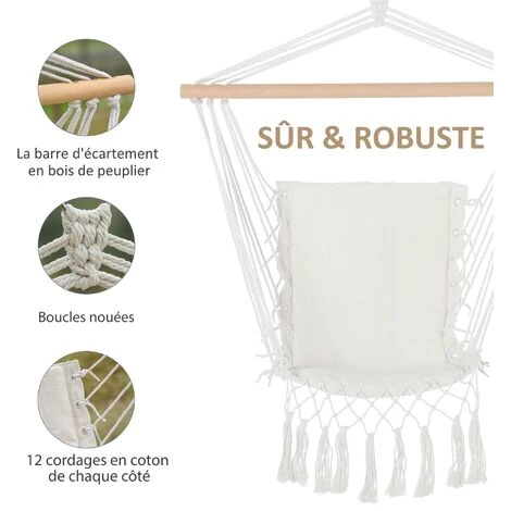 – Fauteuil suspendu en macramé coton polyester avec franges style bohème chic qui sublimera votre espace