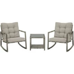 Ce magnifique ensemble de jardin 2 places avec table basse style contemporain vous permettra de profiter des beaux-jours au rythme des bercements de votre rocking chair ! Vous ne regretterez pas votre achat.
