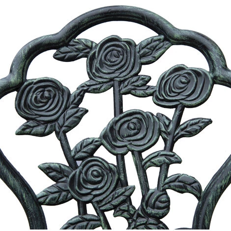 Ajoutez une touche d’élégance à votre jardin ou votre terrasse grâce à cet ensemble 3 pièces style néo-rétro. Fabriqué en fonte d’aluminium avec lignes fuselées motif rose, il sera du plus plus bel effet dans votre extérieur ! Sa table ronde avec espace d’insertion de parasol vous permettra de profiter d’un agréable moment en extérieur. Caractéristiques : – Ensemble salon de jardin 2 places style néo-rétro avec lignes fuselées motif rose très élégant – Conception et fabrication en fonte d’aluminium robuste pour un usage pérenne sans entretien – Très belles lignes idéales pour ajouter une touche cosy chic à l’espace extérieur de votre choix : terrasse, balcon, jardin, patio, etc… – Utilisation intérieure extérieure possible suivant votre préférence – Table avec espace d’insertion de parasol qui vous permettra de profiter d’un agréable moment en extérieur à l’ombre – Chaise ergonomique avec dossier enveloppant légèrement incliné : confort d’assise optimal – Pieds équipés de patins antidérapants : stabilité optimale, aucun risque de rayure de votre sol – Facile à installer grâce à sa notice d’assemblage illustrée fournie Spécifications : – Couleur : vert vieilli – Matériau principal : fonte d’aluminium – Dim. chaises : 37,8l x 37P x 82H cm – Dim. table : Ø 60 x 69H cm – Dim. assise : Ø 36 x 40H cm – Dim. espace pour parasol : 4,6 cm – Charge max. recommandée : 150 kg (chaises), 50 kg (table) – Livraison effectuée en un colis – Réf. : 01-0795