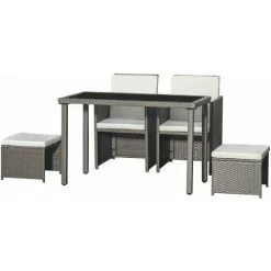 – Ensemble salon de jardin 4 personnes composé d’une table rectangulaire avec plateau en verre trempé, de 2 fauteuil et de 2 poufs grand confort