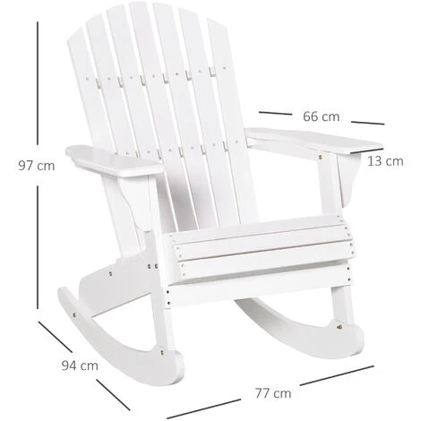 Ce magnifique fauteuil Adirondack à bascule de jardin sublimera votre extérieur ou votre véranda ! Très confortable et ultra tendance, vous pourrez vous bercer et prélasser de longues heures en lisant un livre. Caractéristiques : – Fauteuil de jardin style néo-rétro Adirondack à bascule très tendance – Idéal pour sublimer la décoration de votre jardin, terrasse, balcon, véranda, patio, etc… – Conception et fabrication en bois de sapin traité et peint en blanc pour une intégration facile à votre espace – L’inclinaison du dossier, l’assise profonde avec extrémité avant tombante est une véritable invitation à la détente et au repos – Montage très simple et rapide à l’aide du manuel d’assemblage illustré fourni Spécifications : – Matériau : bois de sapin – Dimensions totales : 77l x 94P x 97H cm – Largeur assise : 50,5 cm – Profondeur assise : 52 cm – Hauteur assise : 47 cm (point le plus haut) – Largeur dossier : 50,5 cm – Hauteur dossier : 76 cm (jusqu’à l’assise) – Hauteur accoudoirs : 64,5 cm (point le plus haut) – Charge max. recommandée : 130 Kg – Livraison effectuée en un colis – Réf. : 84B-528WT