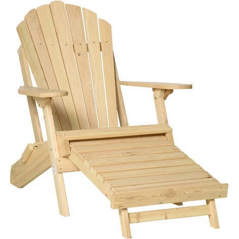 Ce fauteuil Adirondack en bois de sapin pré-huilé coloris naturel est incroyablement tendance ! Son style néo-rétro apportera une touche d’originalité et d’élégance supplémentaire à votre extérieur. Grâce à son haut dossier incliné, son assise profonde, ses larges accoudoirs et à son repose-pied rétractable, vous pourrez passer de longues heures confortablement installé dans votre jardin ou sur votre terrasse. Sans oublier la fonction pliable du fauteuil et de la table basse qui vous permettra de les ranger plus facilement.