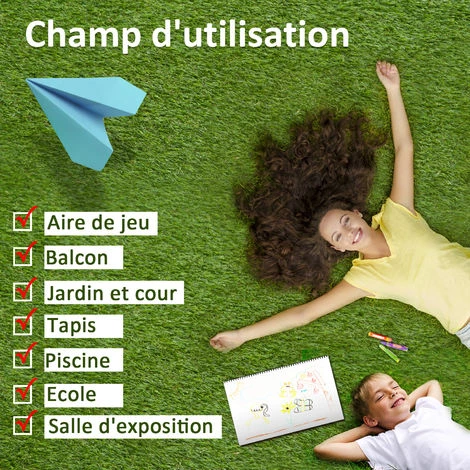 Description : Cette magnifique pelouse artificielle en rouleau dimensions 3L x 1l m vous permettra de profiter d’un beau gazon sans ses contraintes récurrentes d’entretien. Pouvant être installée sur de la terre, une terrasse ou un balcon, cette pelouse ajoutera une touche de verdure et confort à votre extérieur. En effet, ses 25 mm d’épaisseur lui confère un grand confort pour marcher pied nu ou en chaussettes comme sur un tapis. Caractéristiques : – Gazon synthétique plus vrai que nature et ne nécessitant aucun entretien – Idéal pour une installation sur votre terrasse, balcon, patio, ou dans votre jardin – Grande résistance aux aléas climatiques, aux rayons-UV pour un usage pérenne – Equipé de trous de drainage afin d’optimiser l’évacuation de l’eau et le séchage – Grande souplesse et épaisseur pour un grand confort d’utilisation – Conçu et fabriqué à partir de matériaux non toxiques écologiques – Excellente durée de vie : pas de décoloration, forme et confort stable Spécifications : – Couleur principale : vert – Matériaux principaux : PE, BSF et PP – Dimensions totales : 3L x 1l m – Dimensions rouleau : dia. 19 x 100l cm – Hauteur de l’herbe : env. 2,5 cm – Densité de fibre : 6500 – Réf. : 844-125