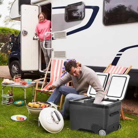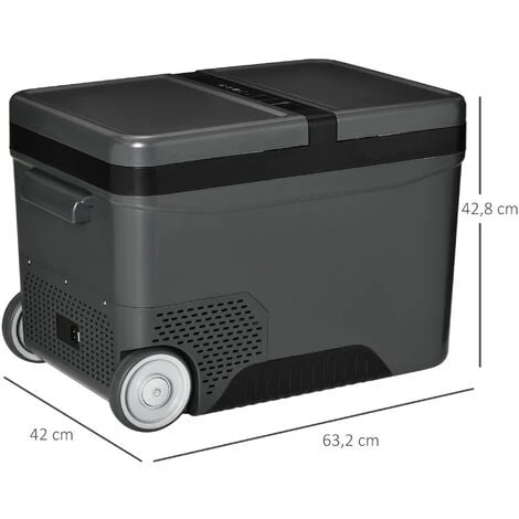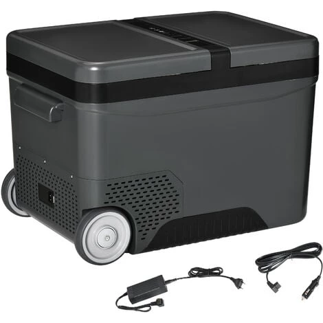 Outsunny Glacière-congélateur Portable à Compression 2 Compartiments -22°C – 10°C 35L Prise Alume-cigare + Adaptateur Inclus Gris Noir