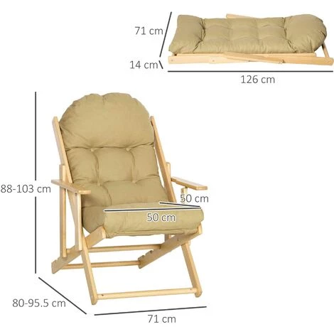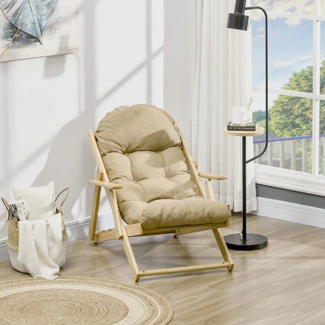 Asseyez-vous confortablement dans notre fauteuil au style naturel et authentique HOMCOM. Ce fauteuil inclinable pliant se distingue par son grand coussin capitonné et épais en tissu pour un confort incroyable. Son dossier réglable en 3 positions peut satisfaire tous vos besoins en matière de détente. De plus, le fauteuil se plie pour gagner de la place, ce qui est très pratique et idéal pour les espaces limités.