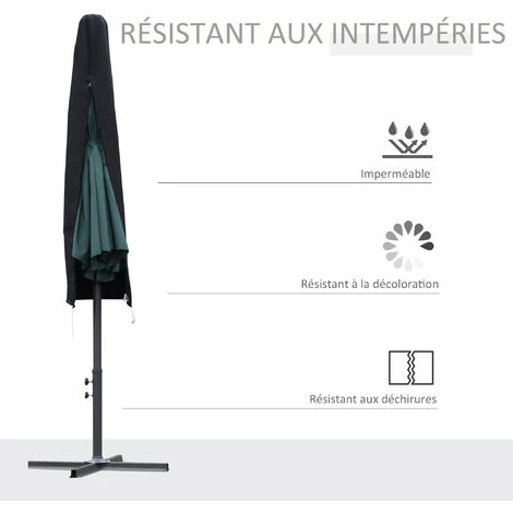 Cette superbe housse de protection imperméable pour parasol droit avec zip et cordon de serrage sera une protection efficace contre les intempéries. Avec l’arrivée des beaux jours mais aussi des orages, cette housse vous deviendra vite indispensable afin de protéger efficacement votre parasol et d’optimiser sa durée de vie ! Caractéristiques : – Housse de protection imperméable pour parasol droit – Permet une protection optimale contre les intempéries afin d’optimiser la durée de vie de votre parasol – Fermeture intégrale possible via zip et cordon de serrage – Compatible avec la plupart des parasols droits – Fabriqué en polyester oxford 420D imperméable – Tige de fibre de verre intégrée permettant de rigidifier la housse et ainsi de faciliter sa mise en place, optimiser sa tenue – Vendu sans le parasol Spécifications : – 3 coloris au choix : crème, noir, kaki léger – Convient aux parasols de diamètre compris entre 270 et 300 cm – Matériaux principaux : polyester oxford imperméable 420D, fibre de verre – Dim. totales : Ø57 x 160H cm – Livraison effectuée en un colis – Réf. : 84D-102CW/BK/CF