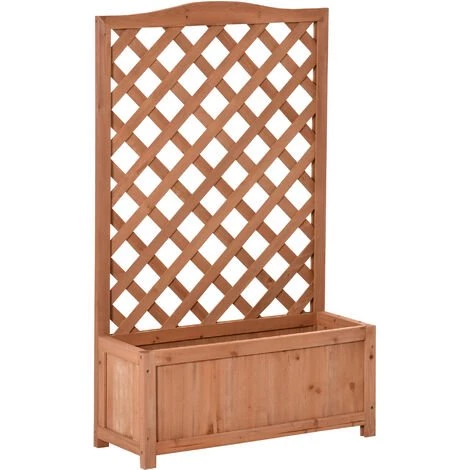 Sublimez votre extérieur avec cette jardinière sur pied et son treillis en bois de teinte marron. Caractéristiques : – Jardinière rectangulaire sur pieds avec treillis idéale pour planter et mettre en valeur vos jolies fleurs, plantes grimpantes ou autre – Treillis haut H. 1,7 m ou 1,17 m (suivant modèle choisi) qui préservera votre intimité dans votre jardin ou balcon – Conçue et fabriquée en bois de sapin pré-huilé : usage pérenne sans entretien – Jardinière robuste : charge max. recommandée de 50 Kg – Fond à lattes favorisant le drainage de l’eau, l’oxygénation de la terre et le bon développement de vos plantes – Profondeur de 24 cm vous permettant de faire pousser des végétaux à enracinement moyen – Montage simple et rapide à l’aide du manuel d’assemblage illustré fourni Spécifications : – Couleur : bois de sapin pré-huilé – Matériau : bois de sapin – Dim. totales : 76L x 36l x 170H cm ou 70L x 28l x 117H cm (suivant modèle choisi) – Dim. internes de plantation : 71L x 31l x 24H cm ou 65L x 23l x 24H cm – Dim. treillis : 76L x 2,5l x 140H cm ou 70L x 2,5l x 87H cm – Charge max. recommandée : 50 Kg – Livraison effectuée en un colis – Réf. : 845-635V01/635