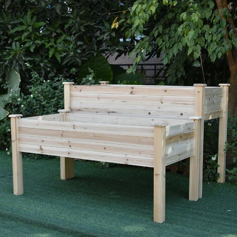 – Jardinière rectangulaire potager sur pieds double niveau idéal pour jardiner à domicile sans avoir à se baisser