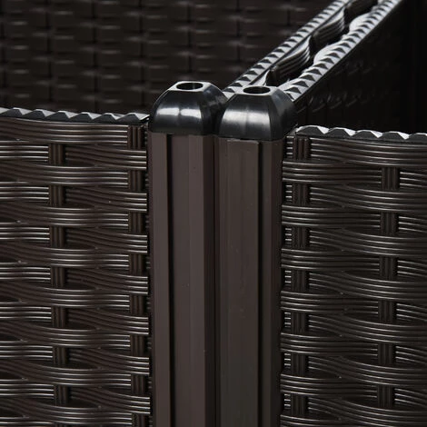 Ce superbe carré potager 2 étages sur pieds en plastique PP imitation rotin tressé marron vous permettra de faire vos plantations de légumes, plantes aromatiques ou fleurs sans avoir à vous baisser. Compacte et très élégante, elle s’intègrera parfaitement sur votre balcon, terrasse, patio ou jardin. Caractéristiques : – Jardinière carré potager 2 niveaux idéal pour jardiner à domicile sans avoir à se baisser – Idéal pour ajouter une touche d’originalité et d’élégance à votre extérieur – Carré potager grande taille permettant de faire pousser tous types de plantations (légumes, plantes aromatiques ou fleurs) sans ajout d’insecticide – Scindé en 4 parties : 2 parties hautes sur pied, 2 parties basses au niveau du sol – Conçu et fabriqué en plastique PP imitation rotin tressé pour un usage pérenne – Jardinière robuste : charge max. recommandée de 30 Kg par bac – Inserts d’irrigation inclus – Montage simple et rapide à l’aide du manuel d’assemblage illustré fourni Spécifications : – Couleur : chocolat – Matériau principal : plastique PP – Dim. totales : 40L x 40l x 44H/40L x 40l x 26H cm – Dim. espaces plantation : 38L x 38l x 18H cm – Charge max. recommandée : 30 Kg (par jardinière) – Hauteur des pieds : 18 cm – Ø inserts d’irrigation : 2,5 cm – Livraison effectuée en un colis – Réf. : 845-290V02