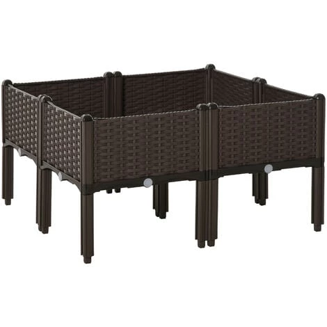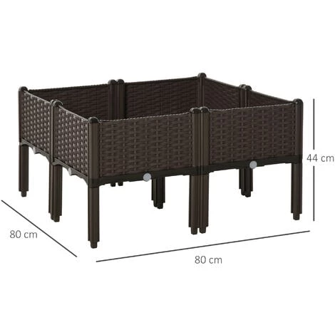 Ce superbe carré potager sur pieds en PP imitation rotin tressé marron vous permettra de faire vos plantations de légumes, plantes aromatiques ou fleurs sans avoir à vous baisser. Compacte et très élégante, elle s’intègrera parfaitement sur votre balcon, terrasse, patio ou jardin. Caractéristiques : – Jardinière carré potager sur pied idéal pour jardiner à domicile sans avoir à se baisser – Jardinière parfaite pour ajouter une touche d’originalité et d’élégance à votre extérieur – Carré potager grande taille permettant de faire pousser tous types de plantations (légumes, plantes aromatiques ou fleurs) sans ajout d’insecticide – Conçu et fabriqué en PP imitation rotin tressé pour un usage pérenne – Jardinière robuste : charge max. recommandée de 50 Kg par bac – Inserts d’irrigation inclus – Montage simple et rapide à l’aide du manuel d’assemblage illustré fourni Spécifications : – Couleur : chocolat – Matériau principal : polypropylène (PP) – Dim. totales : 40L x 40l x 44H cm – Dim. espaces plantation : 38L x 38l x 18H cm – Dim. panneaux latéraux : 33L x 18l cm – Dim. panneau inférieur grillagé : 35,5L x 35,5l cm – Dim. panneau inférieur : 40L x 40l x 3,5H cm – Ø trous de drainage : 2,5 cm – Charge max. recommandée : 50 Kg (par jardinière) – Livraison effectuée en un colis – Réf : 845-439V01