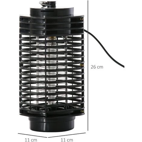 Ce tueur électronique d’insectes est d’une redoutable efficacité pour débarrasser une zone de l’invasion de toutes espèces volantes : mouches, moustiques, guêpes, etc… Son élégant design en forme de lanterne vous permettra de l’intégrer facilement dans l’espace intérieur ou extérieur de votre choix. Caractéristiques : – Destructeur d’insecte design lanterne coloris noir, appareil qui se fondra parfaitement à votre décoration intérieure ou extérieure – Lampe UV anti-insectes très rapide à installer en la posant sur un buffet, une bibliothèque, un guéridon, un rebord de fenêtre et d’une redoutable efficacité – Possibilité également de l’accrocher à un support (crochet d’attache niveau supérieur intégré) – Fonctionnement simple sans aucun produit chimique : les insectes volants sont attirés par le rayonnement de lumière UV puis électrocutés. Méthode 2 fois plus efficace que les autres anti-insectes disponibles – Aucun risque de danger pour l’homme comme pour les animaux domestiques (+ aucune pollution de l’air) – Utilisation intérieure ou extérieure possible (surface d’efficacité de 50 m² environ) – Appareil idéal pour une utilisation à domicile mais pas seulement : usage également possible en restaurant, hotel, camping, etc… – Taille compacte, alimentation secteur : usage pratique, facile avec possibilité de l’emmener en vacances Spécifications : – Couleur principale : noir – Matériaux principaux : métal, ABS – Dim. totales : 11L x 11l x 26 H cm – Dim. tube : Ø 1,6 x 16,5L cm – Surface effective : 50 m² env. – Tension nominale : AC 220V / 50 Hz – Puissance : 3 W – Longueur câble d’alimentation : 1 m – Durée de vie : 5 000 heures env. – Certifications normes CE-LVD, EMC, RoHS – Livraison effectuée en un colis – Réf. : 849-018