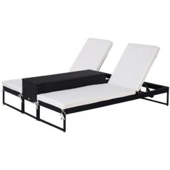 Ce superbe lot de 2 bains de soleil grand confort (matelas inclus) accompagnĂ© d’une jolie table basse rectangulaire sublimera votre extĂ©rieur ! DotĂ© d’un revĂȘtement trĂšs Ă©lĂ©gant en rĂ©sine tressĂ©e 4 fils noire et trĂšs confortable (dossier inclinable multi-positions, etc…), vous pourrez profiter pleinement des belles journĂ©es en duo !