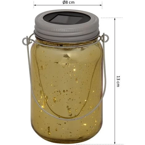 Ce lot de 4 lampes LED décoratives de jardin style mason jar diffusera une magnifique lumière blanc chaud. Doté d’un interrupteur marche/arrêt, en verre coloris vert, jaune, violet et effet miroir sans tain, ce lot de lanterne sublimera votre extérieur. Son éclairage journalier longue durée (de 6 à 8 heures), sans aucun branchement électrique (lampes LED), et étanche (norme IP44) vous permettront de l’utiliser de façon pérenne sans danger.