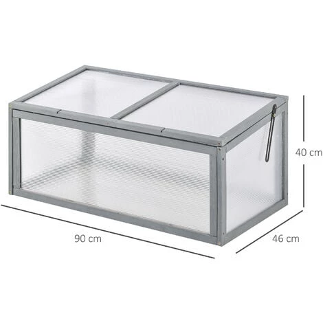 Cette jolie mini serre de jardin avec toit ouvrable vous permettra de protéger vos plantes, légumes, etc… durant l’hiver et le printemps. Sa conception et fabrication en bois de sapin pré-huilé pzint en gris et panneaux de polycarbonate vous assureront protection et rendement.