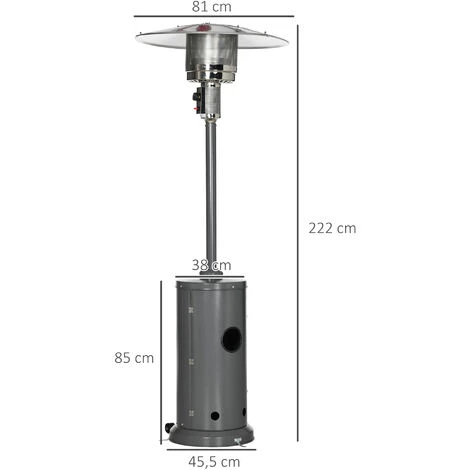 Ce parasol chauffant vous permettra de profiter de votre jardin même si les températures sont fraiches. En effet, sa source de chaleur est instantanée avec large rayonnement de 6 m environ. Pour votre confort, la puissance de ce modèle de parasol chauffant est réglable de 5 kW min. à 12,5 kW max. de quoi vous réchauffer lors de vos déjeuners ou soirées à l’extérieur !
