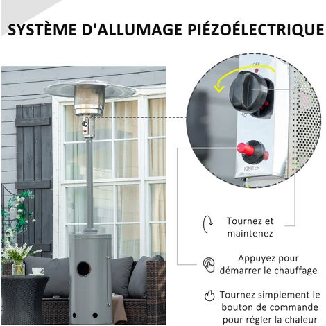 – Puissance réglable de 5 kW min. à 12,5 kW max. de quoi vous réchauffer lors de vos déjeuners ou soirées à l’extérieur