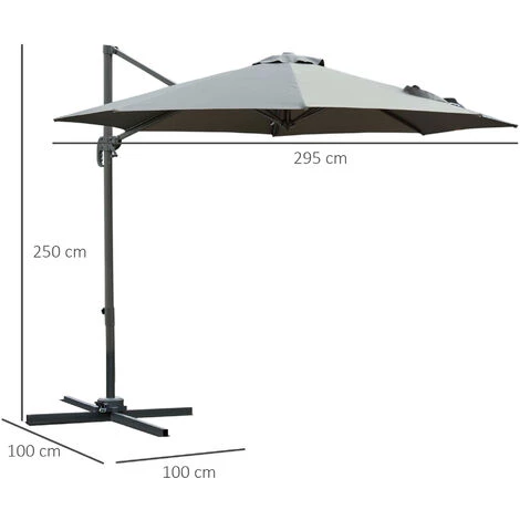 Cet élégant parasol octogonal inclinable rotatif 360° est idéal pour profiter entre amis ou en famille de votre extérieur ! Pour vous assurer une utilisation pérenne en toute sécurité, ce parasol est composé de 8 baleines et contrefiches ainsi que d’un mât robuste en aluminium, et d’un piètement en acier. Pratique et design, cet élément indispensable à votre jardin et terrasse vous ravira ! Caractéristiques : – Parasol déporté octogonal grande taille diamètre 2,95 m et hauteur 2,5 m – Design alliant modernité et élégance – Idéal pour profiter d’une grande zone ombragée sur votre terrasse, dans votre jardin ou au bord de votre piscine ! – Possibilité d’incliner le parasol en fonction de la hauteur du soleil (4 niveaux d’inclinaison au total) – Parasol rotatif à 360° grâce au mât pivotant 360° (une pédale pivotante 360° sur le pied en croix et poignée pour contrôle facile de la rotation du mât) – Ouverture et fermeture facile grâce à sa manivelle intégrée – Toile en polyester haute densité 180 g/m² vous offrant une protection optimale contre les rayons UV nocifs du soleil – Parasol disposant également d’une cheminée pour éviter les prises au vent et pour limiter la stagnation de l’air sous la toile – Conception, fabrication de la structure avec des matériaux de qualité : acier, aluminium – Montage facile, rapide à l’aide du manuel d’assemblage illustré fourni – NOTE : parasol à installer uniquement sur un sol parfaitement plat et à lester (dalles non fournies) Spécifications : – Couleur : gris – Matériaux principaux : aluminium, acier, polyester haute densité – Dim. totales : Ø 2,95 x 2,5H m – Dim. mât alu. : 6,8L x 5l cm – Livraison effectuée en un colis – Réf. : 84D-065CG
