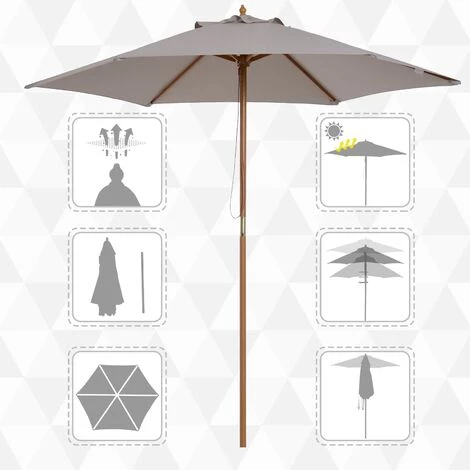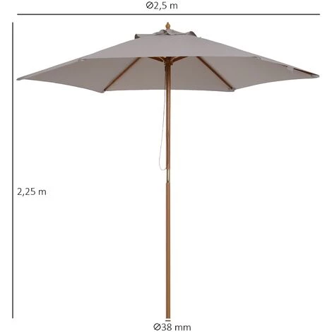 Ce grand modèle de parasol droit dimensions Ø 2,5 x 2,3H m en bois vous offrira une protection optimale contre le soleil. Avec la montée des températures, ce parasol vous permettra de profiter de votre jardin, terrasse ou balcon tout en restant au frais à l’ombre. Caractéristiques : – Grand parasol droit hexagonal idéal pour une utilisation dans votre jardin, sur votre terrasse, balcon, etc. – Composé de 6 entretoises doublées (soit 12 au total) en bois de bambou, robuste et stable – Tissu de polyester haute densité 180 g/m² avec protection UV pour une utilisation pérenne – Parasol disposant également d’une cheminée pour éviter les prises au vent et pour limiter la stagnation de l’air sous la toile – Mât démontable en 2 parties pour plus de commodité de rangement et transport si besoin – Fixation en position ouverte grâce à un mécanisme de verrouillage de sécurité à goupille 3 positions – Ouverture fermeture manuelle du parasol – NOTE : pied / base de parasol non inclus Spécifications : – 3 coloris au choix : rouge, gris ou crème – Matériaux principaux : bambou, bois de sapin, tissu polyester 180 g/m² – Dimensions totales : Ø 2,50 x 2,30H m – Réf. : 84D-056RD/GY/CW