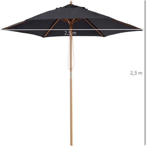 Ce grand modèle de parasol droit dimensions Ø 2,5 x 2,3H m en bois vous offrira une protection optimale contre le soleil. Avec la montée des températures, ce parasol vous permettra de profiter de votre jardin, terrasse ou balcon tout en restant au frais à l’ombre.